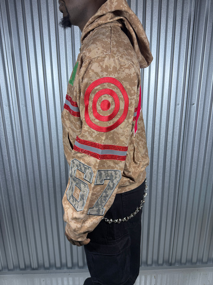 Details: DTG Print, Embroidery Stitching, 3M Reflective, Flooded Red Rhinestones